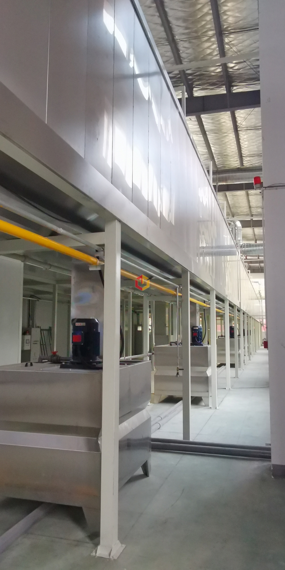 自動龍門式前處理根據(jù)工件形狀和生產(chǎn)量不同,主要結(jié)構(gòu)形式有浸漬式、隧道通過噴淋式;浸漬式適用于大件、笨件等產(chǎn)量不太大的生產(chǎn)線;隧道通過噴淋式適用于小工件且產(chǎn)量較大的生產(chǎn)流水線。