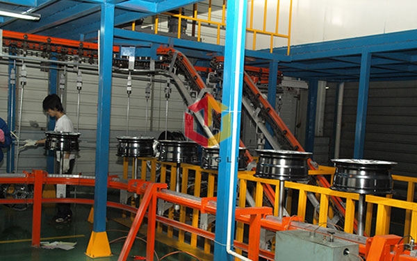 汽車輪轂噴涂線的方法與車輛其他部位的噴涂大同小異,但有一定的前提條件: 由于其特殊的使用“條件”,車輛行駛當中的負重、雨水洗刷、酸堿物質的侵蝕、高速運轉時所產生的自身熱量以及制動傳遞過來的熱量.....都要求其保持: